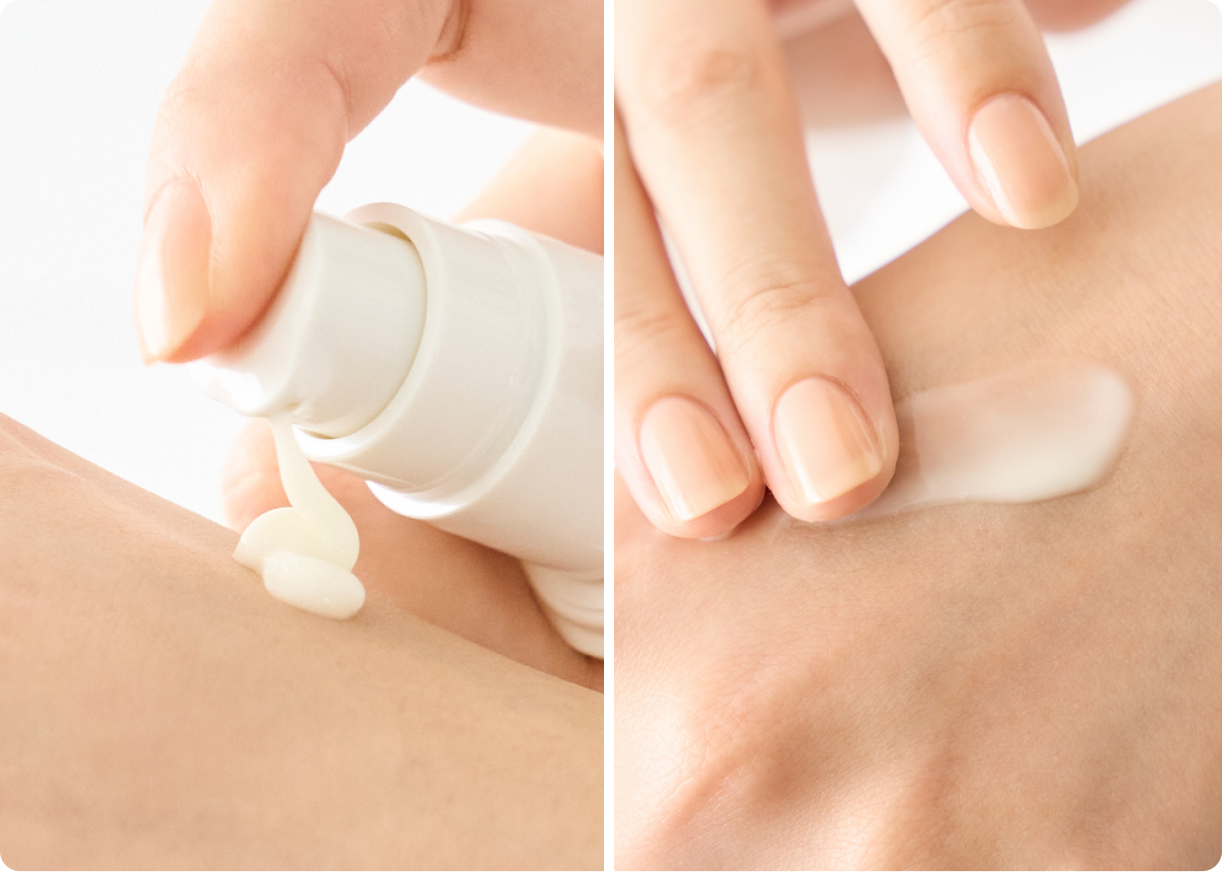 洗顔後の肌に使用。2~3プッシュ手のひらにとり、顔全体にハンドプレスで優しくなじませます。